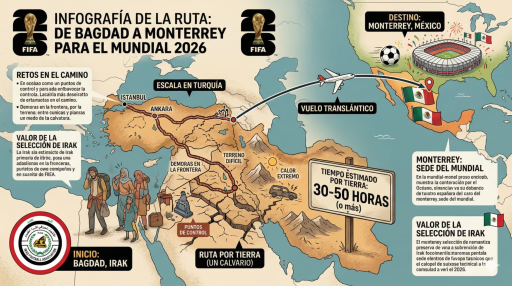 Ante la crisis, la FIFA sugirió una solución que fue calificada de «insólita» por el cuerpo técnico de Irak: un viaje por tierra de 25 horas hasta Turquía para recién ahí abordar un vuelo hacia Norteamérica.
