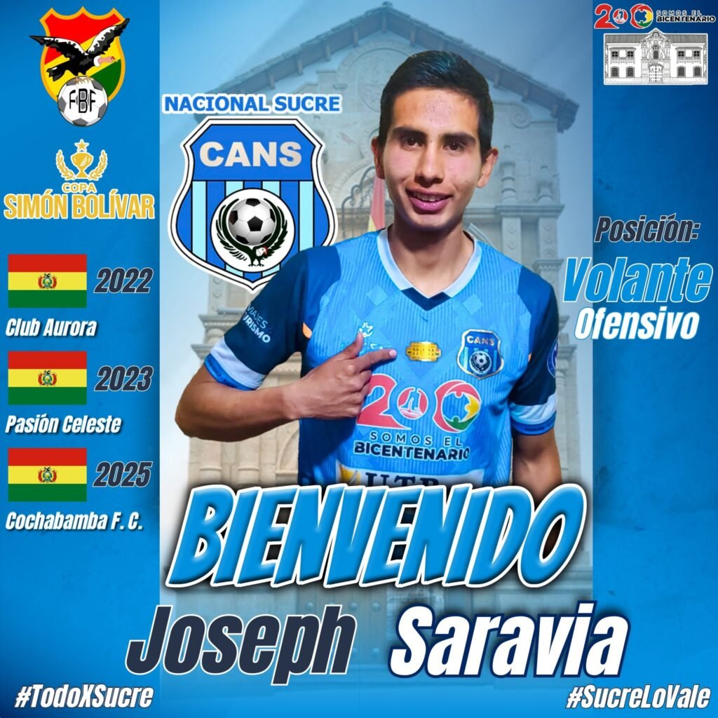 - Joseph Saravia: La cuota de creatividad y ataque viene con el volante ofensivo Joseph Saravia, quien llega desde Cochabamba F.C. y tuvo pasos formativos por Pasión Celeste y el Club Aurora.