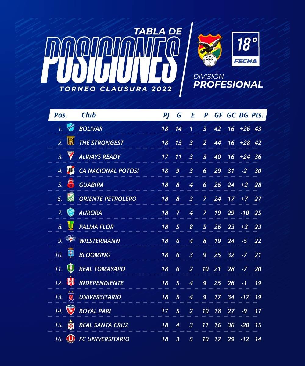La División Profesional entra en pausa por los partidos amistosos de la selección boliviana